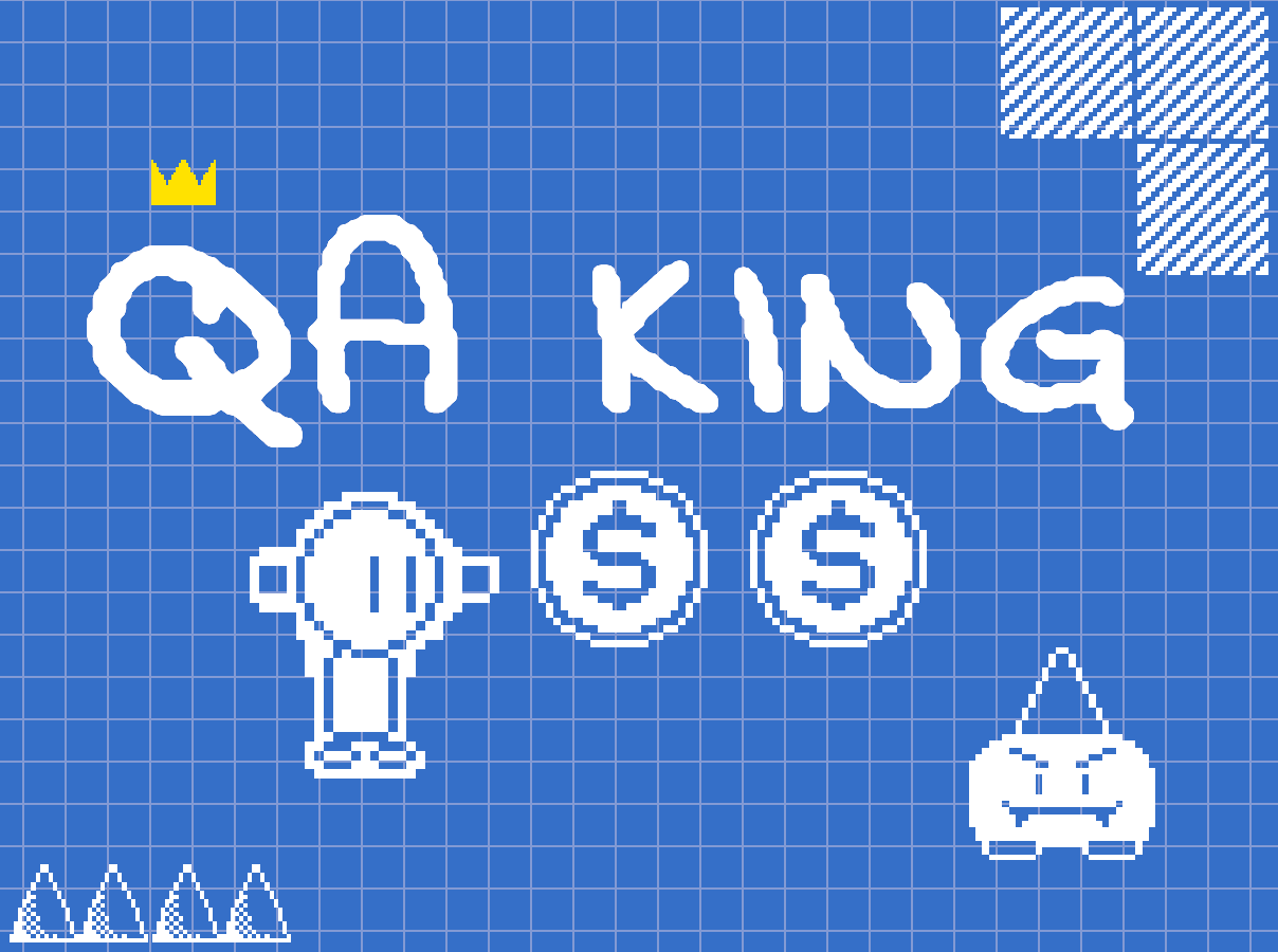 In QA King, you play as an underpaid QA intern. You must discover all of the game-breaking bugs that plague this mess of a project, and use them to your advantage to make it through all of the levels.